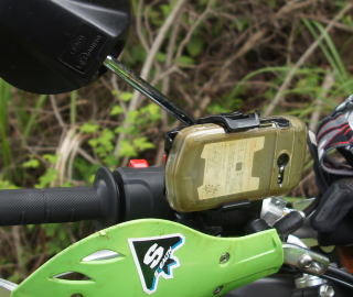 2012年5月KLX納車です 12年式に買い換えしました、男子三日会わざれば刮目せよ(士別れて三日なれば即ち当に刮目して相待つべし)と言いますが四年経っても自分と一緒で進化していないバイクです(しょうがないから色は変えてやったぜワイルドだろぅ〜)、タイの洪水の影響で二ヶ月近く待ちましたKTMのフリーライド(車両のコンセプトとしてはベストマッチ)とも思いましたがプロモーションビデオの様なロケーションは近くにないですし、もちろん腕もありません、それなりの所へ行くにも舗装路を数時間移動することになり辛いかなと思いました、その点KLXは林道までの移動は比較的楽ですしそこそこの難所もこなせます。 とか格好いいこと言ってますがやはり決めては倍近い車両代です(Mrオクレ) |
