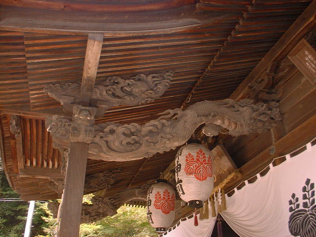 正面には上り龍と下り龍が、巨大な一木から掘りだされている。全部で10年はかかったという素晴らしい彫り物が散りばめられているのだ。