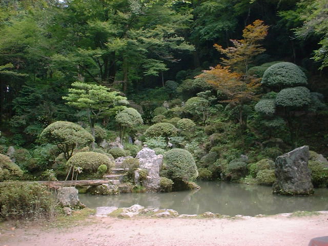 第3に、神殿の裏手に回って驚くのが、美しい庭園だ。これは明らかに禅宗の庭そのもので、横の妙見寺の庭ではないかと思われる。庭の周囲は歩けるようになっていて、様々な角度から鑑賞できるようになっている。