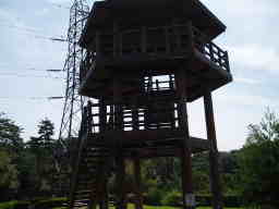 | 鉄塔関係の情報は仕入れたので、公園に入ったときよりずっと気になっていた「展望台」にも行ってみる。途中の木陰のベンチで同年代の2人組女の子が弁当を広げており、例の事を聞いてみようと思ったが、なんとなく恥ずかしくなって素通りしてしまった。 | |